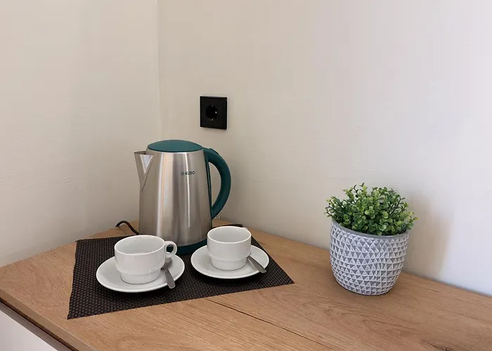 Jeden Morgen wird in der Unterkunft ein Frühstücksbuffet serviert. Um Ihren Aufenthalt zu einem besonderen Erlebnis zu machen, bietet die Pool- Bar auch WLAN und einen TV. Restaurant Olymp und Cafe Noah's sind 450 Meter entfernt.